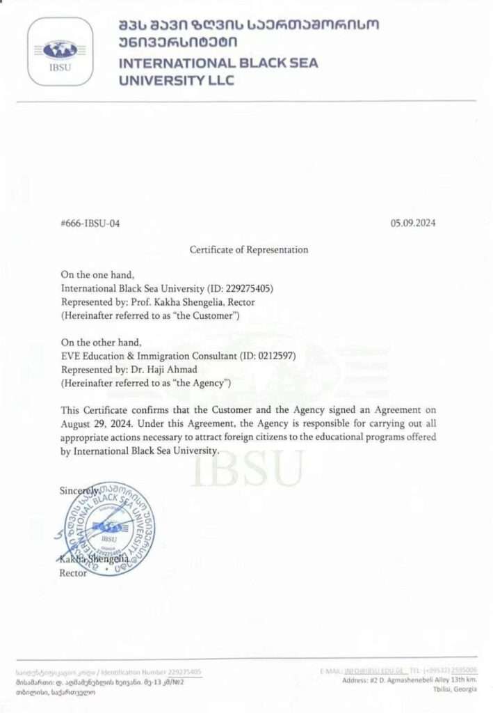 We are proud to partner with International Black Sea University LLC (IBSU), one of Georgia top private universities. IBSU offers a wide range of undergraduate and postgraduate programs in fields such as: